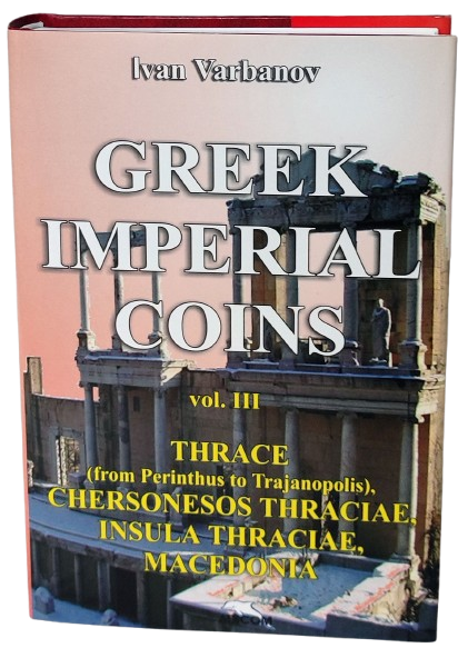 Volume 3 contains short descriptions of the obverse and reverse types of Greek Imperial coins struck in the Balkan mints, followed by a detailed description of the Greek Imperial coins struck in Thrace (Perinthus, Philippopolis, Plotinopolis, Serdica, Topirus and Trajanopolis), Chersonesos Thraciae (Coela, Elaeos and Sestos), Insula Thraciae (Imbros, Samothrace and Thasos) and Macedonia (Macedonon koinon, Apollonia, Amphipolis, Cassandreia, Dium, Edessa, Pella, Philippi, Stobi and Thessalonica). Over 4,837 Greek Imperial coins are described and 1,561 black-and-white photographs presented. In the Appendix there is a detailed map of the cities on the Balkan Peninsula which issued Greek Imperial coins, as well as an index of the emperors, their relatives, and the people depicted on the coins. The valuations given in this catalogue are with degree of rarity from R1 to R10.